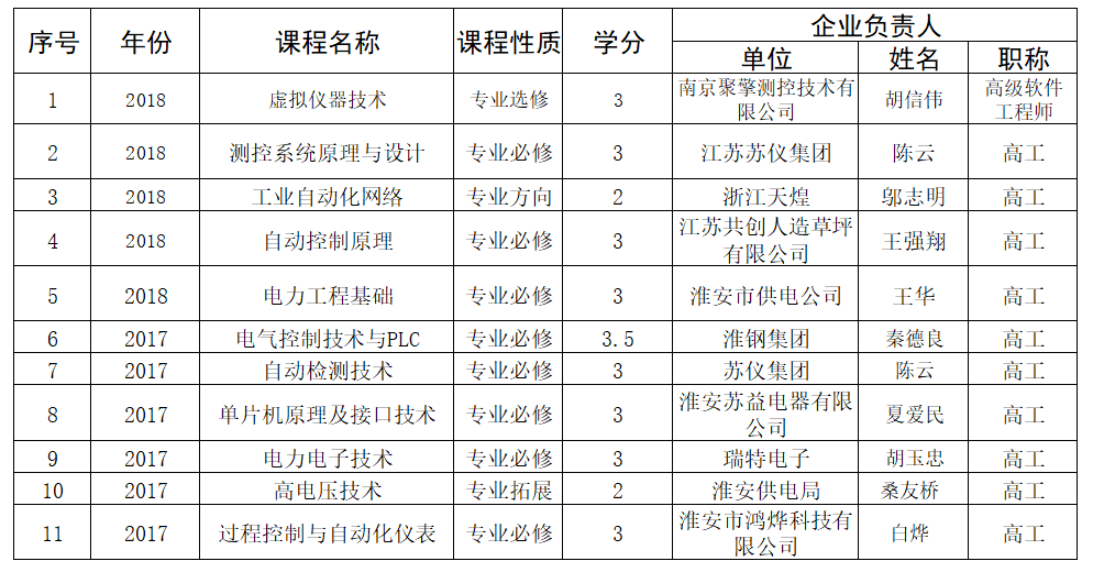 校企共建课程优秀课程一览表