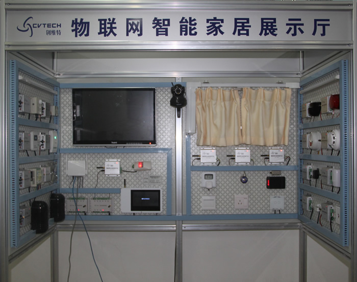 智能家居展示厅由智能环境监测、智能安防监控、智能灯光控制、智能窗帘控制、智能影音系统、智能门禁监控等组成。系统利用互联网将嵌入式中控主机和各种传感器、报警终端以及电器控制终端有机连接,通过中控主机或手机APP进行管理,提供安防系统、环境检测、电器控制、门禁系统、告警联动等应用。