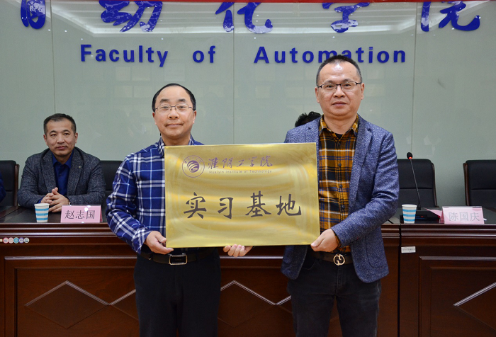 接着举行“共创杯”智能设计大赛颁奖暨实习基地授牌仪式。陈国庆副总经理宣读了本次“共创杯”智能大赛的获奖名单,张海江副书记、赵环宇副经理为获二等奖的员工颁奖;陈国庆副总经理、赵志国经理为获一等奖员工颁奖;吴建华书记、赵春贵副总经理为优秀指导老师颁奖;陈国庆副总经理、张海江副书记代表校企双方举行实习基地授牌仪式。
