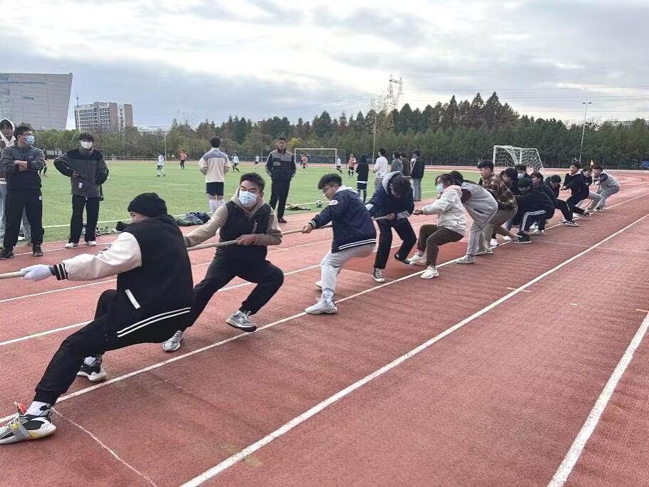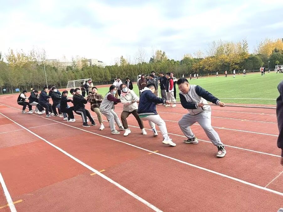 拔河现场,选手们个个摩拳擦掌,排好了阵势,斗志昂扬。在裁判员的指挥下,同学们呐喊下,选手们放下了平时的斯文,用尽全力“战斗”。现场“杀气腾腾”,笑声一片。整个比赛进程气氛热烈,团结活泼,秩序井然。