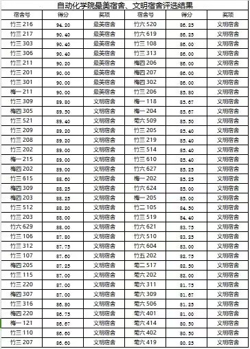 经过院员工会纪律委员会四轮的宿舍检查评比,此次活动共有68间宿舍脱颖而出,进入校文明宿舍的决赛评比。本次评比围绕宿舍内务、学风、文化等多个维度制定评分标准,对宿舍进行全面考察,涵盖宿舍卫生状况、安全系数、整体风貌、文化内涵以及风格特色等方面,最终获奖名单如下: