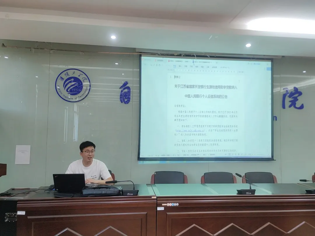 活动伊始,罗强向同学们介绍了国家助学贷款的相关政策,以及助学贷款注意事项。随后,其重点针对2024届毕业生,强调了2024年度生源地助学贷款员工毕业确认具体步骤,讲解了毕业还款的流程、还款方式、还款注意事项、贷款违约后果等内容。最后,罗强提出老员工要诚信还款、及时还款,提升诚信和社会征信意识。
