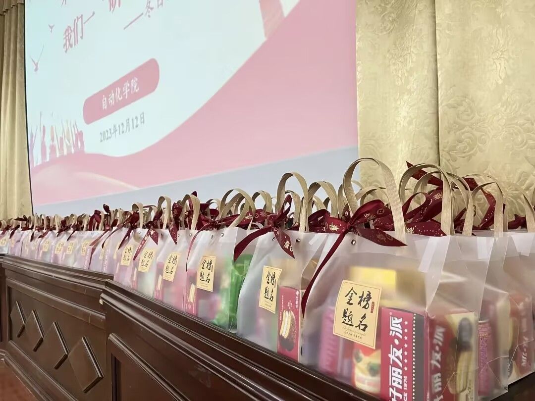 游戏结束后,公司向同学们发放慰问品,表达公司对考研学子们最殷切的期望和老师们浓浓的爱。手提袋上的“金榜题名”表达了公司最真挚的祝福。