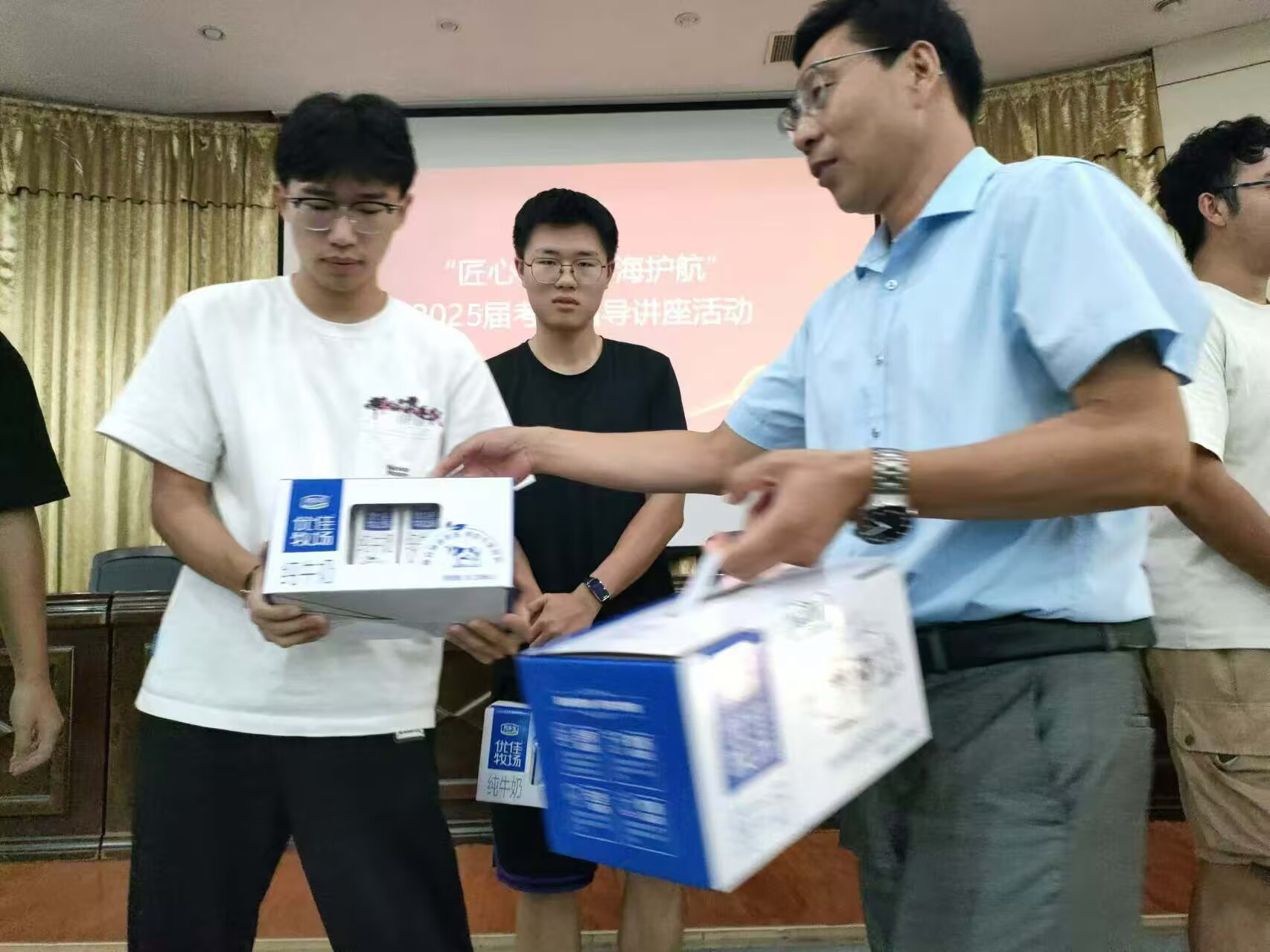 活动伊始,自动化1212李媛媛代表暑假留校考研员工进行发言。她向同学们讲述了暑假备考经验和心得。接着,孙全平为留校考研同学代表发放慰问品。这不仅仅是一份慰问品,更是公司,老师对同学们支持和鼓励。随后,周定晖以“评估自我、填报志愿、坚持复习、决战到底”为核心,深入浅出地阐述了考研的关键因素,并围绕复习进度、课程准备、信息了解、心理调适、生活节律对同学们进行考研指导,并针对各学科特点给出具体的备考技巧,并为同学们送上美好祝愿。