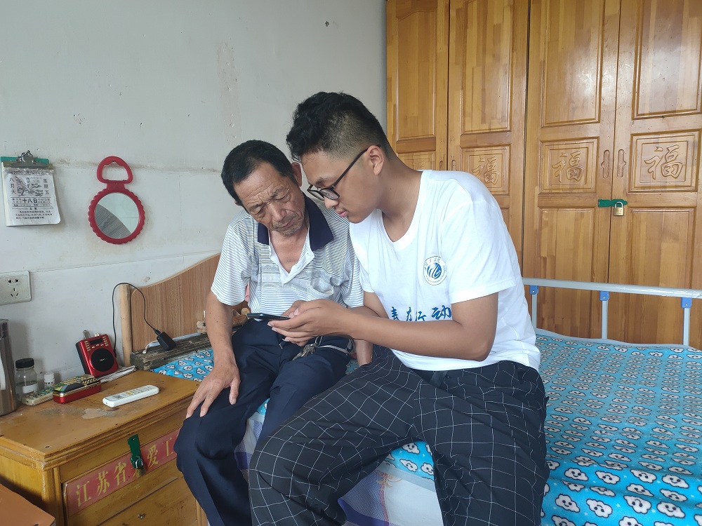 七十五岁的朱大爷,每天通过收音机时刻关注泗洪的发展,一直在向志愿者们分享泗洪的发展历史,志愿者们也从网络上了解的泗洪未来发展规划与老人一起分享,老人听后连连连连感叹时代发展速度之快。