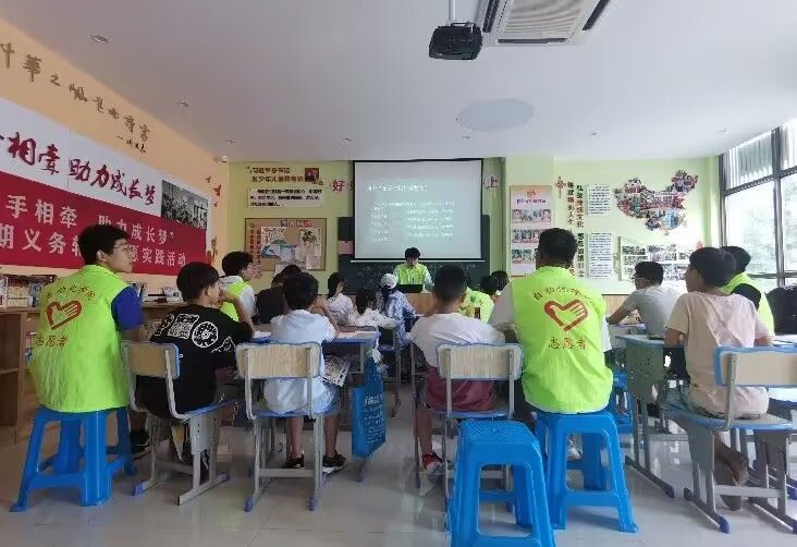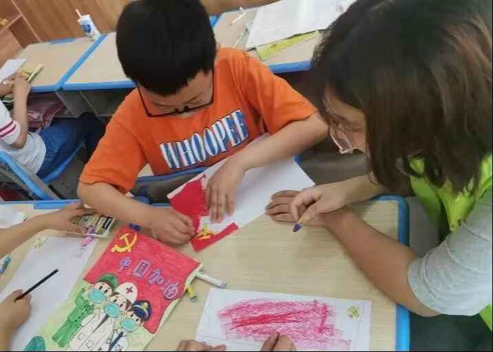 志愿者们不仅辅导孩子们学业知识,还指导孩子们撰写了征文《我心中的英雄》,引导孩子们在明信片上写下对革命先辈以及对党和国家的感言。