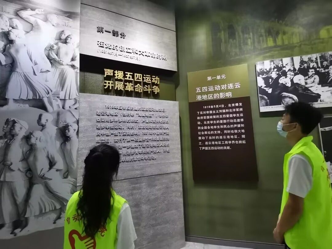 连云港小分队的党员志愿者们走进连云港市革命纪念馆,驻足细观书籍、照片、遗物等珍贵史料的同时,通过语音导览等方式全面深入地了解了连云港市在“五四”运动、土地革命战争、抗日战争、解放战争时期的革命斗争史。大家深刻体悟了先辈们在革命年代坚定不移的意志品质,从宝贵的精神财富中汲取了奋进力量。