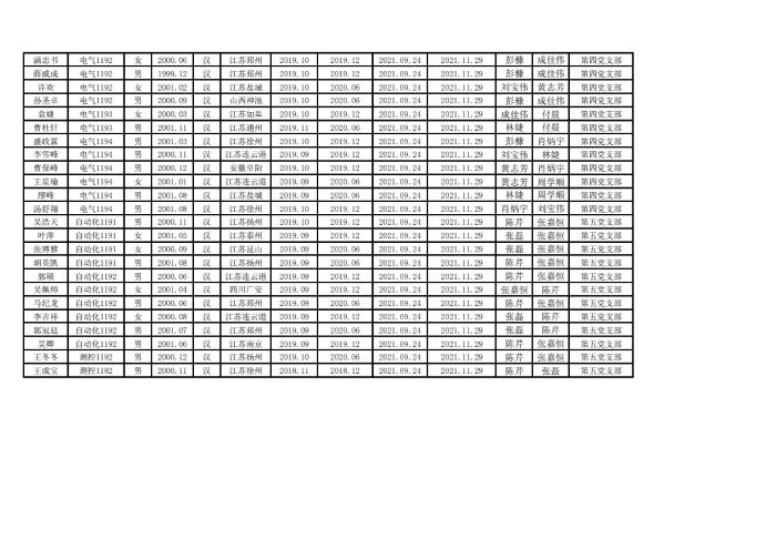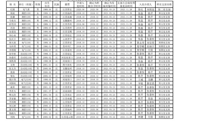 XCsports2021秋季分党公司党课结业人员情况统计表