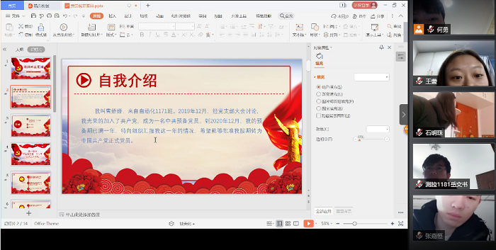 12月30日,XCsports第五党支部召开了线上预备党员转正大会。此次会议中陈卓等4位同志发表转正志愿,并顺利由中共预备党员转为正式党员。会议由支部书记张文博老师主持,支部与会的中共正式党员7名,中共预备党员17名。