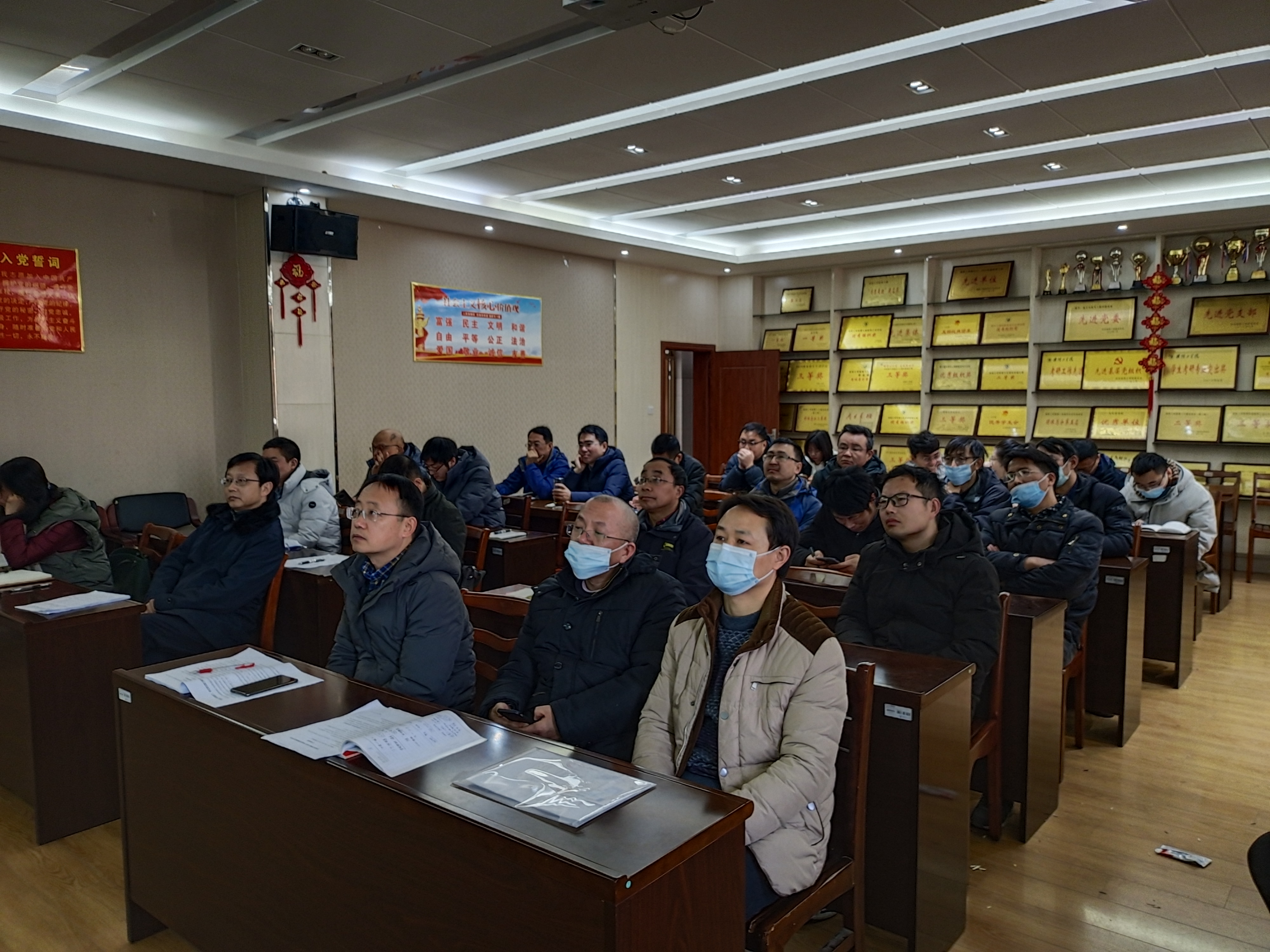 会上施坚书记还传达了淮工疫防组〔2021〕1号《关于做好寒假前后公司疫情防控工作的通知》。