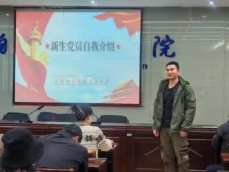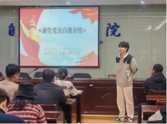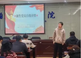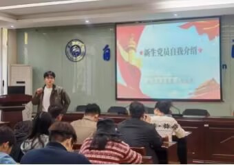 会议第二项议程为新生党员自我介绍。各位新生积极上台,分别从家乡、兴趣爱好、专业研究方向等各个方面进行介绍。