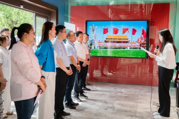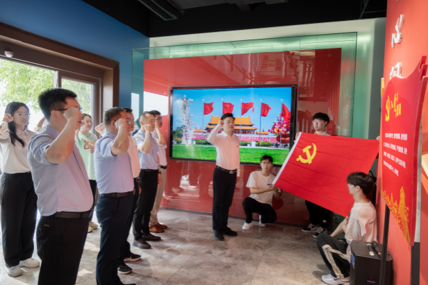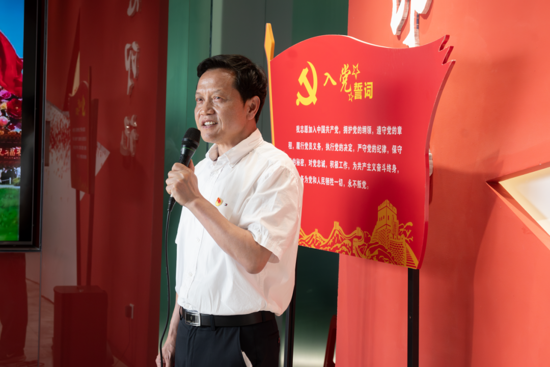 参观结束后,全体党员在鲜红党旗下整齐肃立,高举右拳重温入党誓词。“我志愿加入中国共产党……”誓言字字铿锵,在庄重氛围中激荡起滚烫的初心。一位毕业生党员动容地说:“重温誓词时,入党那一天的庄严场景如在眼前——当年那个满怀热忱、立志为党奉献的自己,此刻与当下的责任彼此呼应。这一字一句不是简单的承诺,而是要用一生去扛的使命担当。”