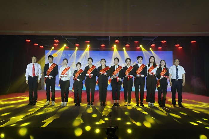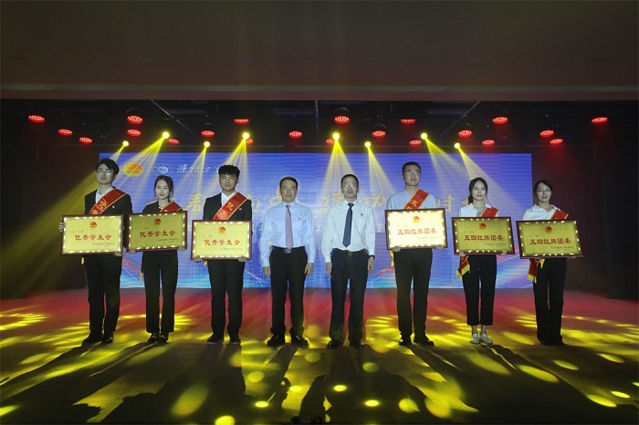 公司党委书记孙爱武,董事长常绿为五四红旗团委、优秀员工会组织代表颁奖