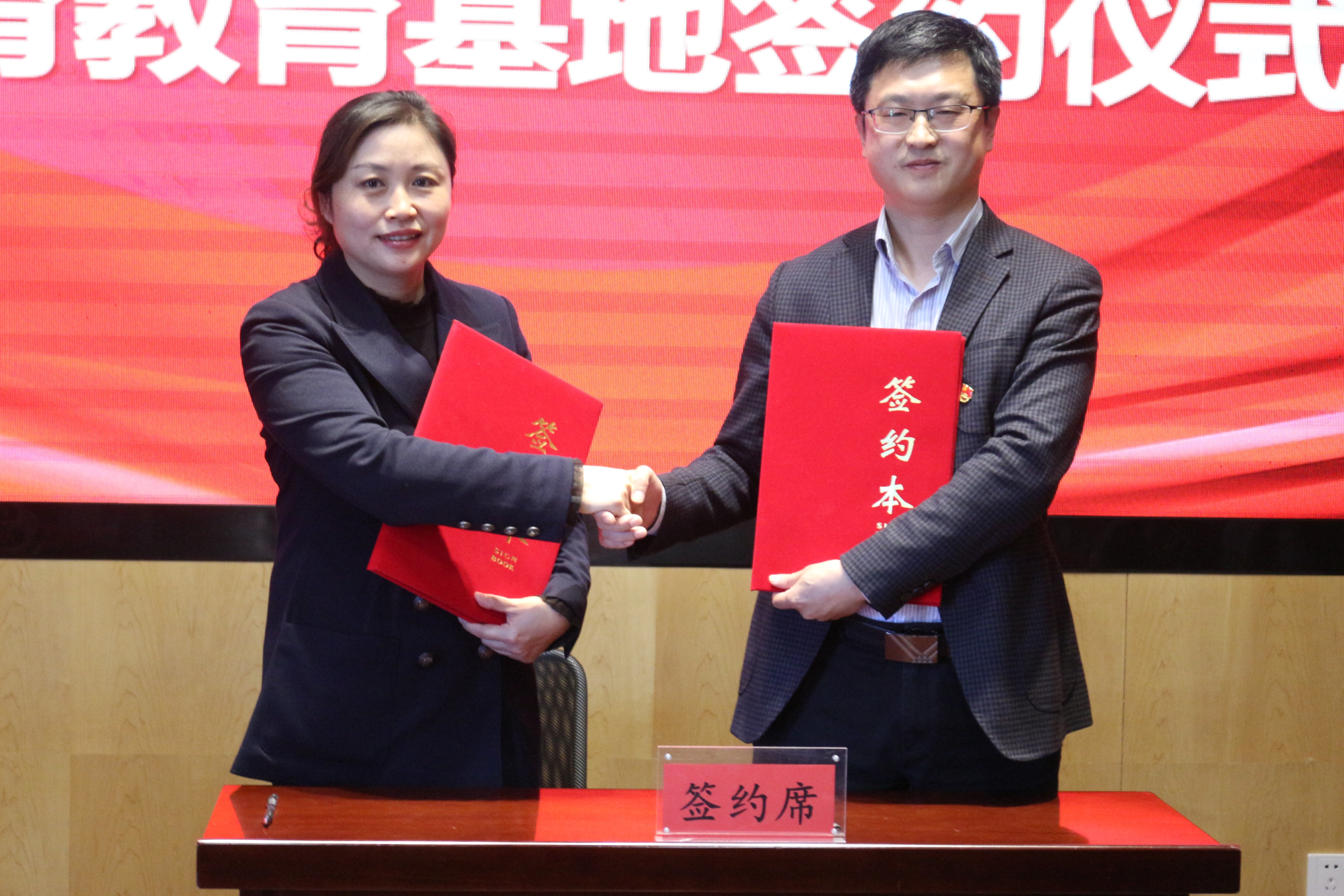 公司党委书记郑洋与旧址管理处主任郭潇签署德育教育基地共建协议。