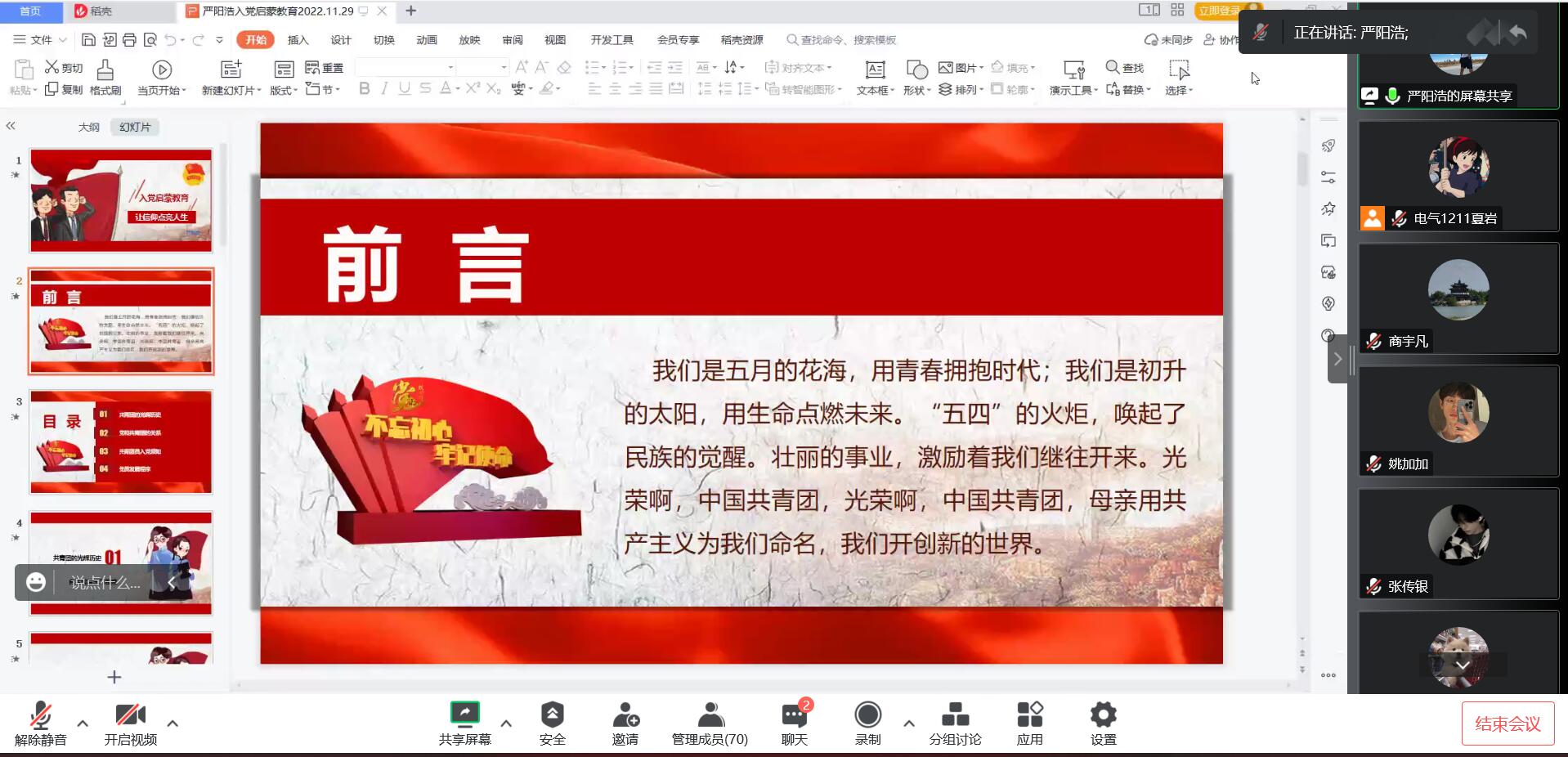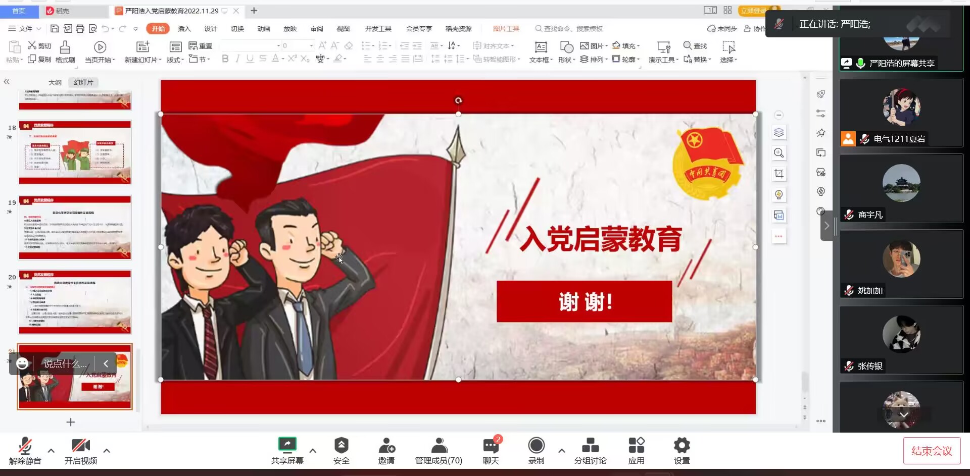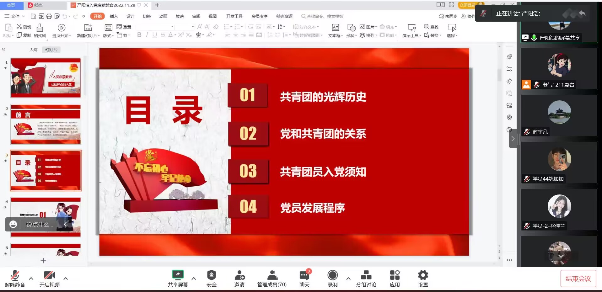 为深入学习宣传贯彻党的二十大精神,着力培养一批优秀的青年政治骨干,11月29日晚上,XCsports在线上开展第二期“青马工程”第三课。本次课程由XCsports辅导员严阳浩老师领学。