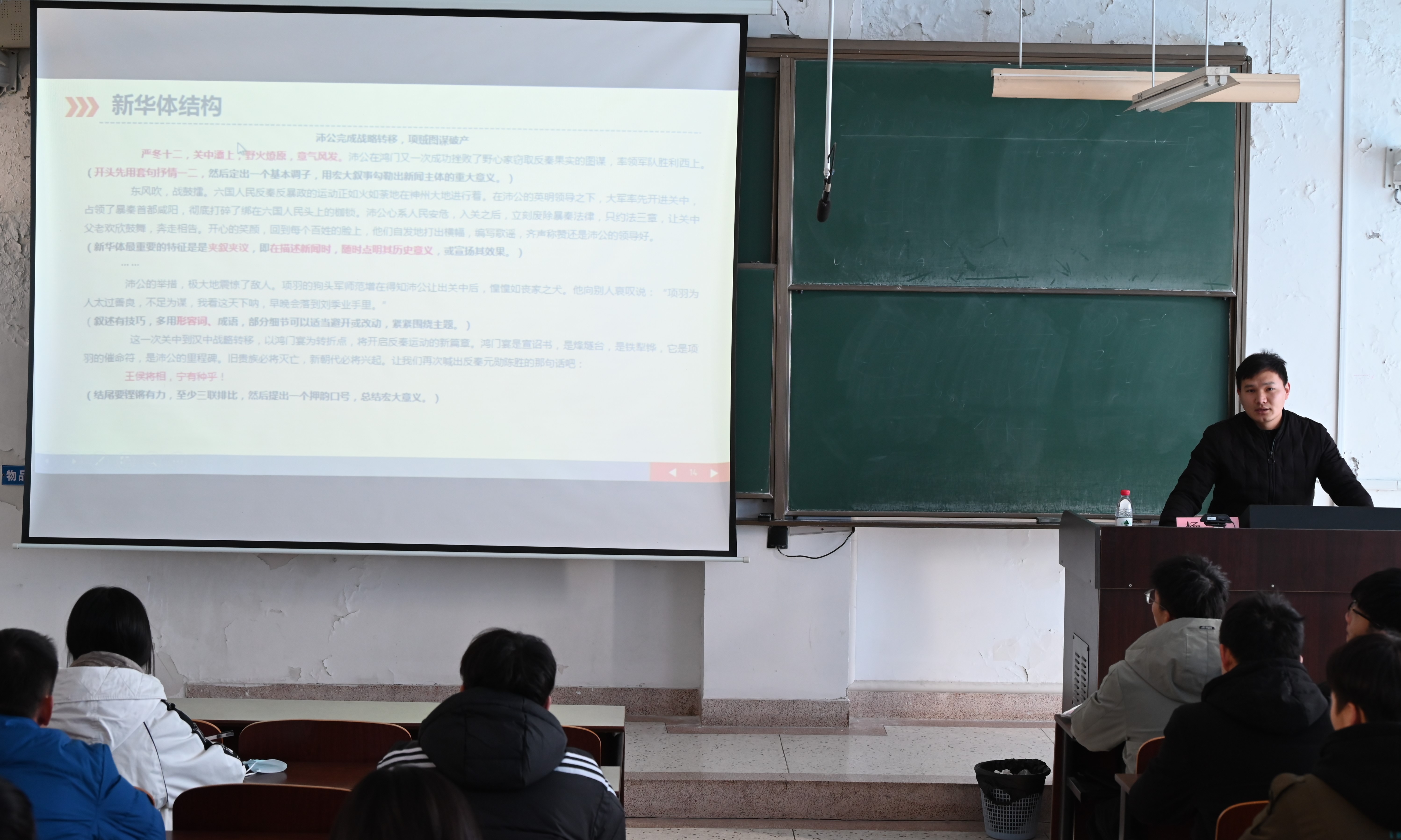 杨建以“新闻宣传技巧与实操”为题,分别从新闻写作的文字报道和图片报道两方面进行讲解。他带领成学员们从新闻定义、主要内容和写作原则三个方面来初步认识新闻写作,并为学员们详细指导新闻摄影。他对全体青马学员提出建议,希望大家齐心协力做好校园宣传工作,为公司增添光彩。