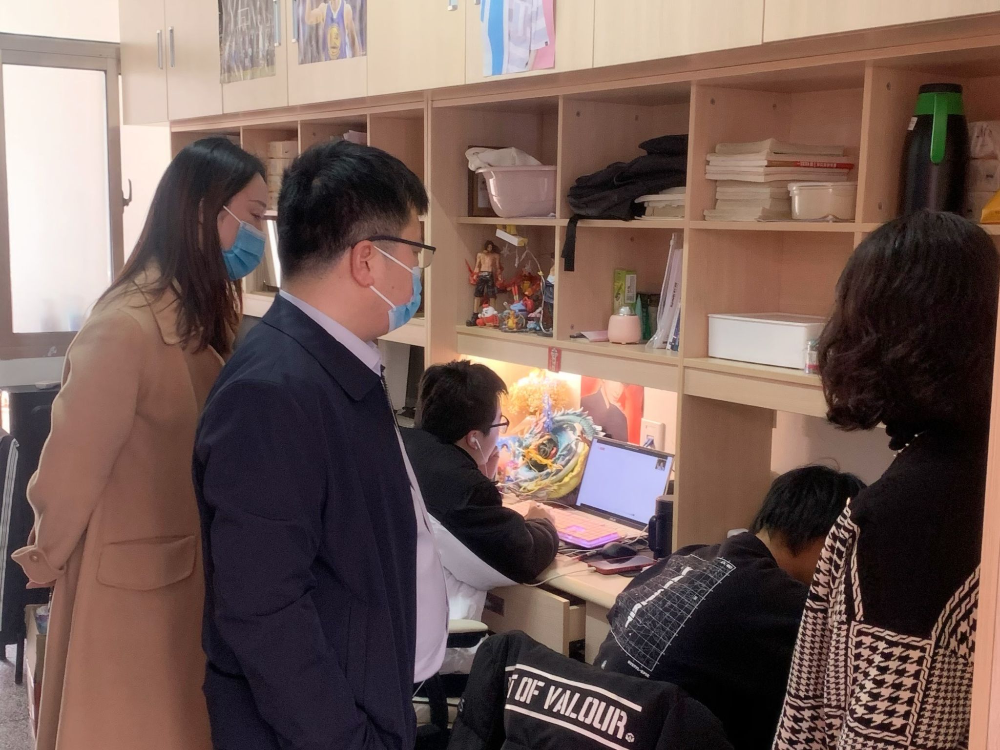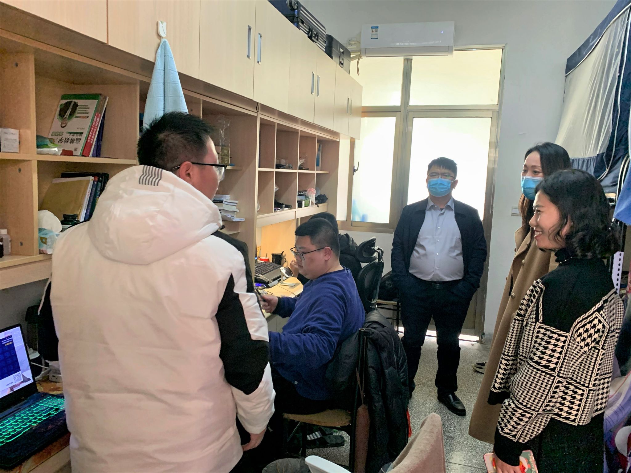 公司党委副书记杨晶陪同走访,辅导员刘琪、吴浩然、严阳浩等走访了其他年级宿舍。