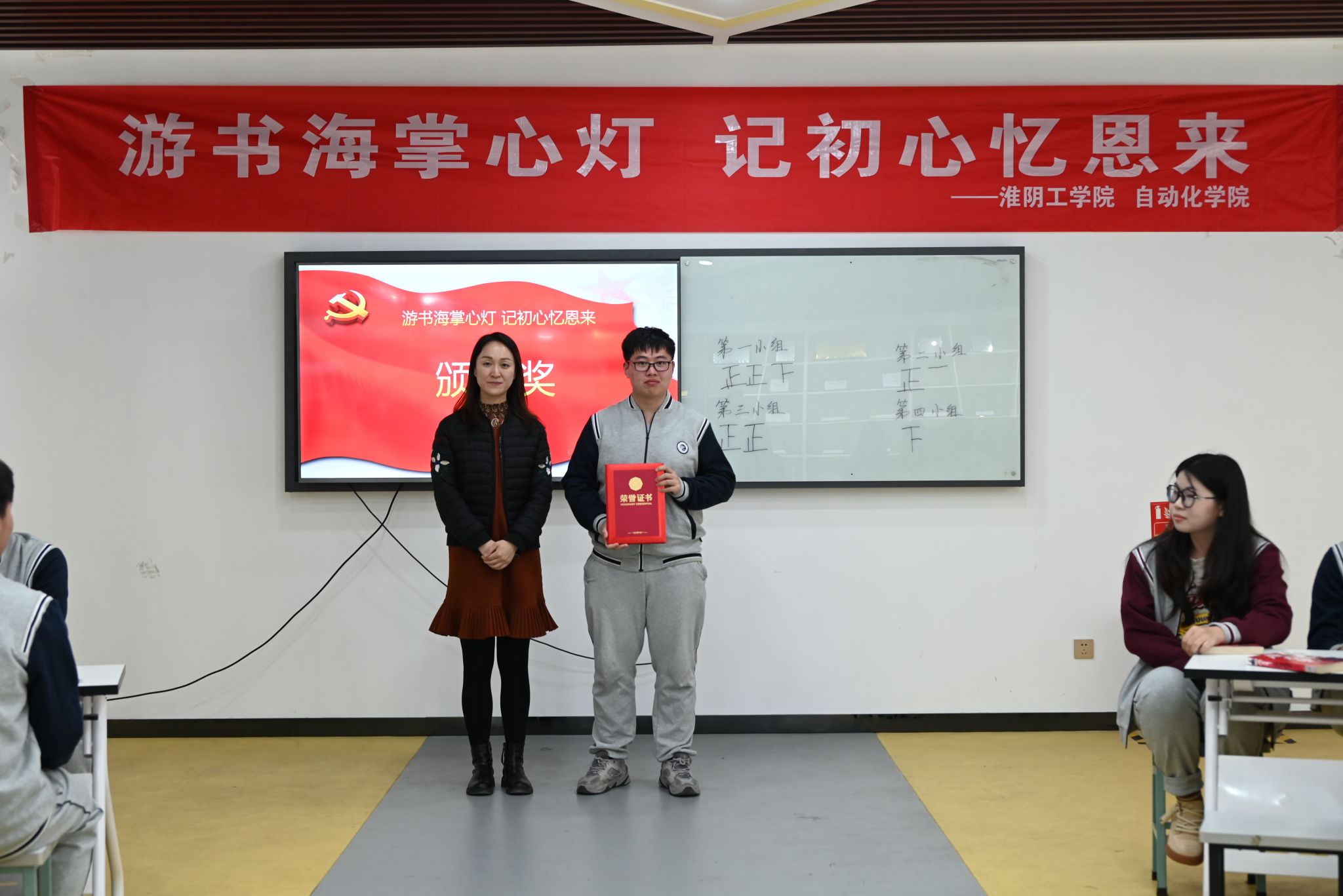活动中,同学们认真观看恩来纪录片、积极抢答、静心阅读、工整摘抄、热烈讨论、乐于分享,以饱满的热情展现了公司学子良好的精神面貌,活动现场气氛轻松热烈,引得在场人员掌声不断。活动最后,杨晶书记为获奖同学颁奖。
