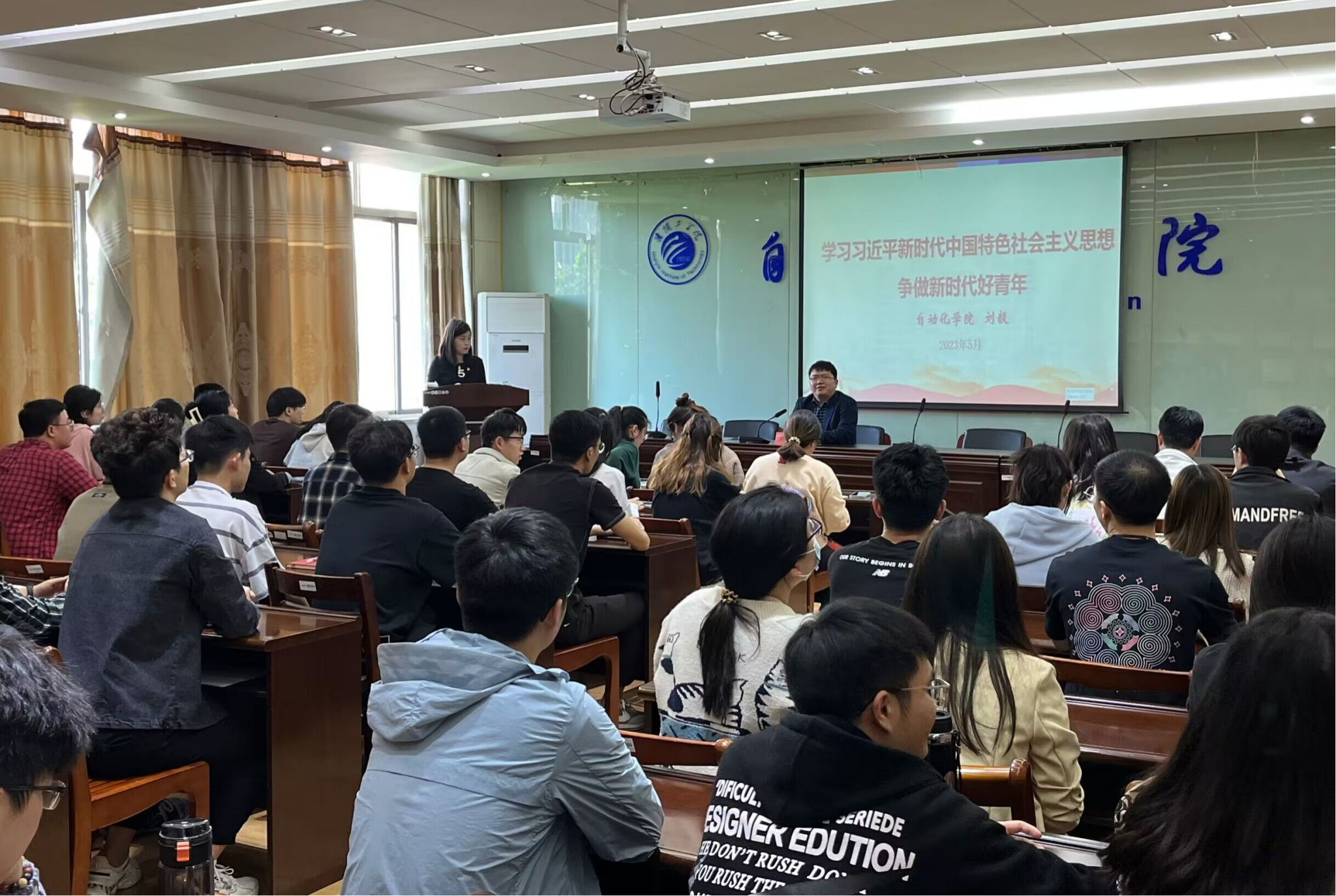 刘毅以《学习习近平新时代中国特色社会主义思想,争做新时代好青年》为题,从习近平新时代中国特色社会主义思想是如何创立的、习近平新时代中国特色社会主义思想回答了什么重大时代课题、习近平新时代中国特色社会主义思想主要包含哪些内容、如何理解习近平新时代中国特色社会主义思想的历史地位、如何学好用好习近平新时代中国特色社会主义思想这五个方面深入阐述了马克思主义中国化时代化最新理论成果,并结合习近平总书记对广大青年的殷切寄语,勉励全院青年党员们以志为先,以新为径,以苦为食,让青春绽放绚丽之花。