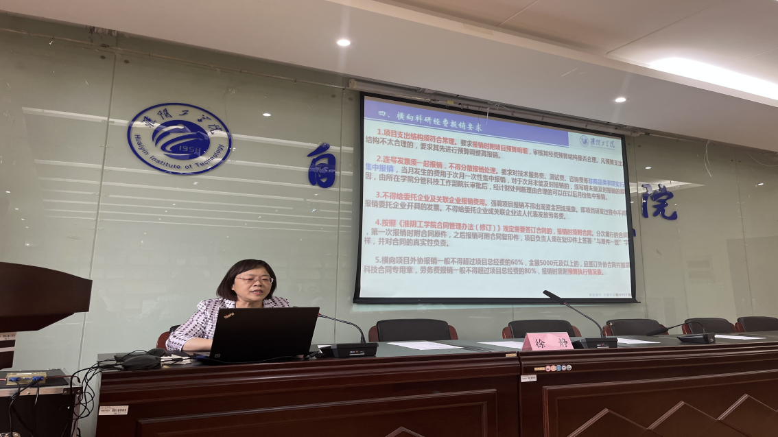 徐静处长分别从计财处内设机构、公司经费支出管理内容、报销高频退单提醒和横向科研经费报销要求四个方面进行了介绍和讲解,具体包括报销审批程序、相关责任、审批权限、报销附件、劳务费发放要求以及专项资金种类等。