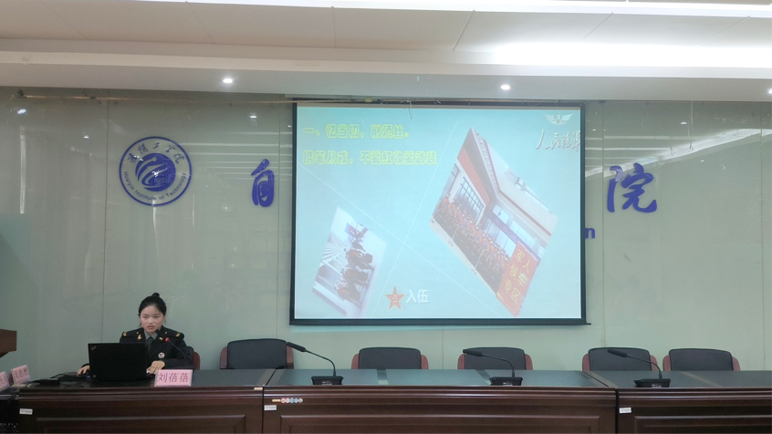 刘蓓蓓以“青春有很多样子,很庆幸我的青春有穿军装的样子”为题介绍了参军的经历和收获。在军营这座大熔炉的历练下,她逐渐拥有了军人的坚强不屈。她说:坚持过来,我才明白枯燥的训练、一遍遍地整理内务以及严酷的训练到底是为了什么,“把合理的事当作锻炼,不合理的当作磨练。”正是那些磨练让我学会了忍受苦痛,性格更加刚毅,更让我懂得了坚持和拼搏的意义。但我依然觉得庆幸,能在人生最灿烂的年纪选择了军营,如果时光逆转,我还是会选择这身军装,一身戎装,一生荣耀。