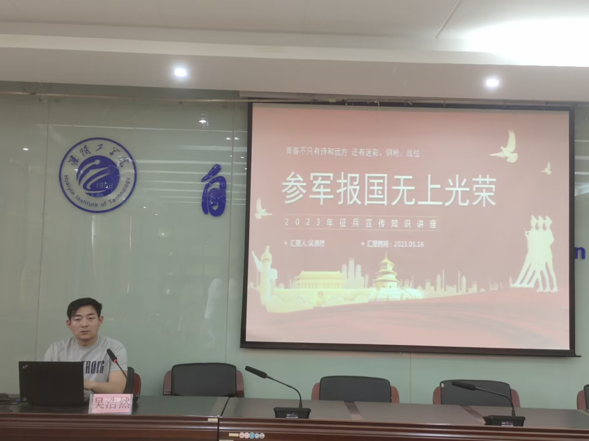 最后,辅导员吴浩然向同学讲解参军的要求、方式、流程、应征入伍时间以及老员工应征入伍服兵役的优待政策等,让更多同学对征兵政策进行全面了解。他呼吁:“现代化的武器装备、军队,都需要有高素质的理工科人才,老员工们要有时代责任,积极为祖国的国防事业和军队现代化建设贡献青春力量”。在场的同学纷纷表示,感受到了军营的热血与激情。