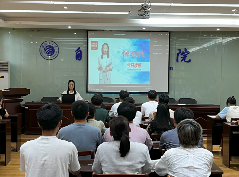杨晶作题为《以廉为帆,启航人生》主题报告,为即将离校的毕业党员送上保驾护航的礼物。报告重点突出、内涵丰富、论述精辟,为我们如何加强新时代廉洁文化建设工作,教育引导广大党员,指明了方向和路径。她先从党史出发,以毛泽东、周恩来等老一辈无产阶级革命家的清廉作风教导支部党员,坚持原则,恪守纪律的底线和红线,堂堂正正做人,希望支部党员从领袖们的廉洁自律中汲取精神力量。之后,全体党员观看中央反腐纪录片《零容忍》第五集《永远在路上》,以纪录片中案件青年化的现象为戒,警醒青年党员们莫让私欲贪恋控制、荣辱观发生错位、价值观产生偏差,滑入违法犯罪的深渊,导致青春戛然转折。