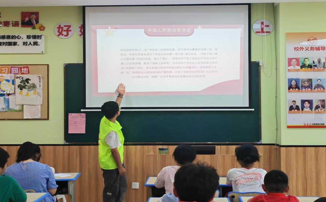 实践团成员聚焦红色故事理论宣讲,通过一个个生动感人的英雄故事,让留守儿童们从中汲取自信、自立、自强的精神力量,引导他们树立正确的价值观和人生观。