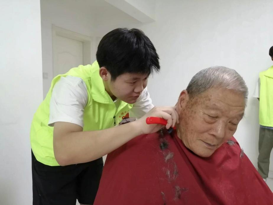 在实践活动中,深入行动不便的留守老人家中,帮助留守老人打扫卫生、理发、整理家务。志愿者们免费为乡村老年人爱心义剪中,志愿者们一边为老人理发,一边陪老人聊天,原本枯燥的剪发过程一时变得欢声笑语。整个义剪活动持续了三个多小时,娴熟精炼的技术让老人的面貌焕然一新。