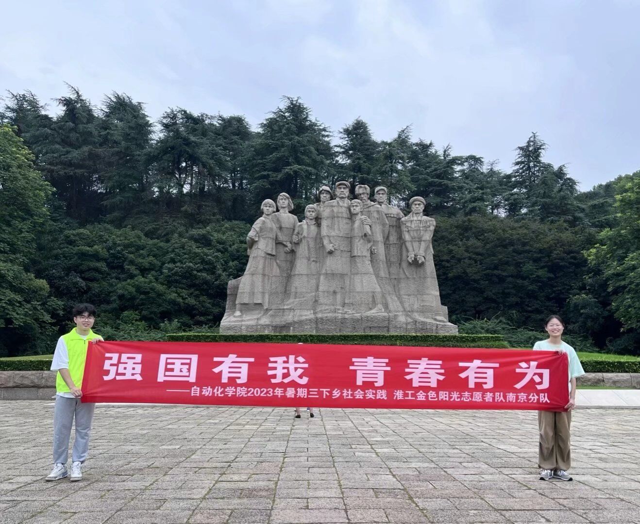 在雨花台北广场的烈士群雕像前,实践团成员朗诵诗歌《不朽》,在重温先烈光辉历程、传承红色记忆的同时,加深自身的认同感与使命感,体悟新时代所赋予当代青年的崇高使命内涵。