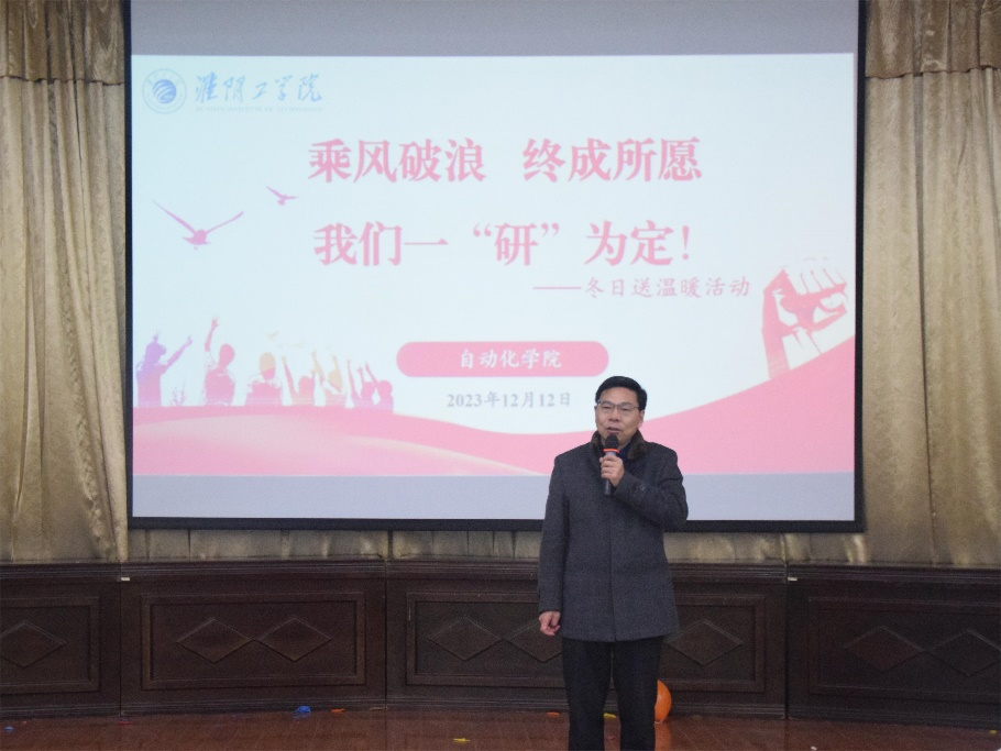 活动最后孙全平书记进行讲话,鼓励考研学子们砥砺奋进,以最饱满的姿态迎接考试。孙书记送给了考研学子们三个关键词:自信、坦然和坚持,相信有了这三个关键词考研学子们在考场上将更加从容,做起题来将更加得心应手。