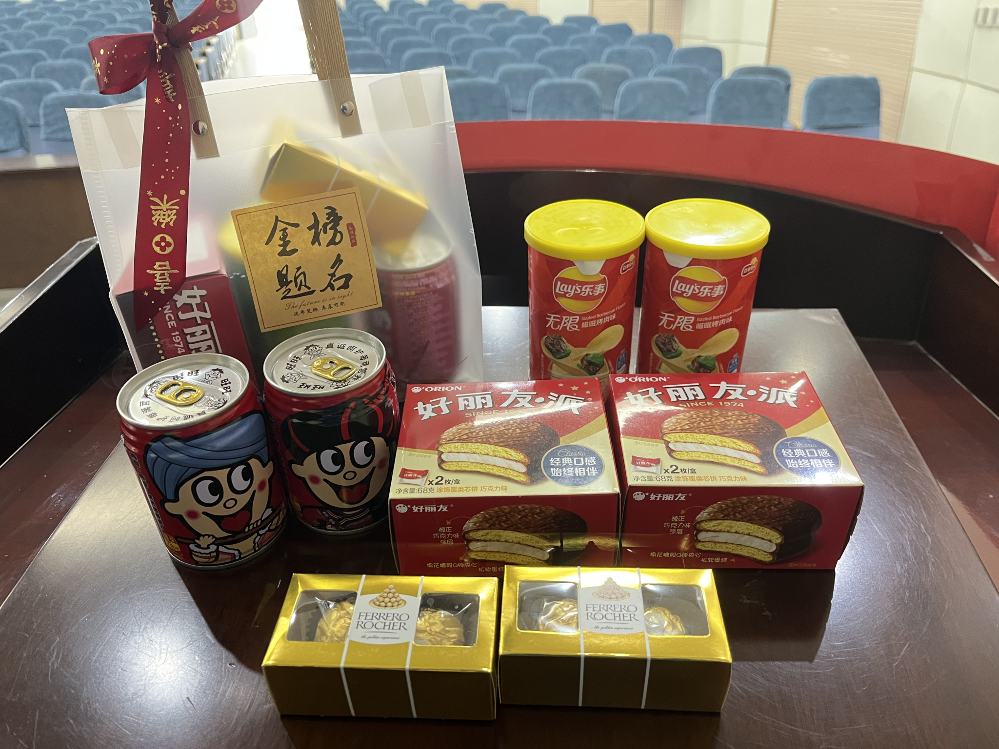 游戏结束后,公司向同学们发放慰问品,表达公司对考研学子们最殷切的期望和老师们浓浓的爱。手提袋上的“金榜题名”表达了公司最真挚的祝福。