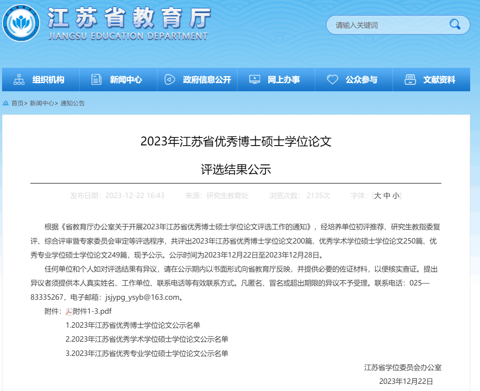 2023年12月22日,江苏省江苏省学位委员会办公室公布了2023年江苏省研究生优秀学位论文评选结果,XCsports杜董生教授和于滨教授联合指导吴瑜同学的硕士论文《化工过程合成反应器的故障诊断技术研究》获评江苏省优秀专业硕士学位论文。