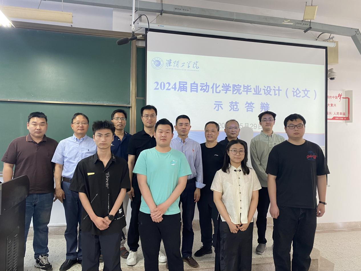 电气工程及其自动化专业的史宇龙、自动化专业的王举、测控技术与仪器专业的张金龙、陈可4位同学参加了本次示范答辩。答辩同学通过PPT陈述了设计思路、设计方案、设计内容、结果及现实意义,随后评审老师针对毕业设计(论文)内容提出相关问题,考察同学们对专业知识以及设计(论文)研究内容的掌握程度,并有针对性的对同学们的答辩表现进行总结,提出意见建议。整个答辩过程流畅,员工回答问题清楚。