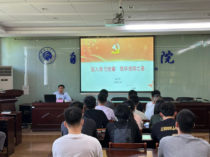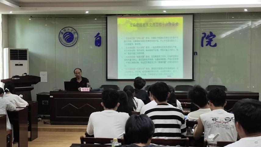 本次培训班共安排5场专题讲座,分别是《深入学习党章,筑牢信仰之基》(孙全平)、《我们力什么要加入中国共产党?——与申请入党的同学谈谈心》(韩飞)、《遵纪守法廉洁自律争做一名合格党员》(杨晶)、《端正入党动机,积极向党组织靠拢》(龚卫东)、《开班仪式、入党流程介绍》(吴浩然)。