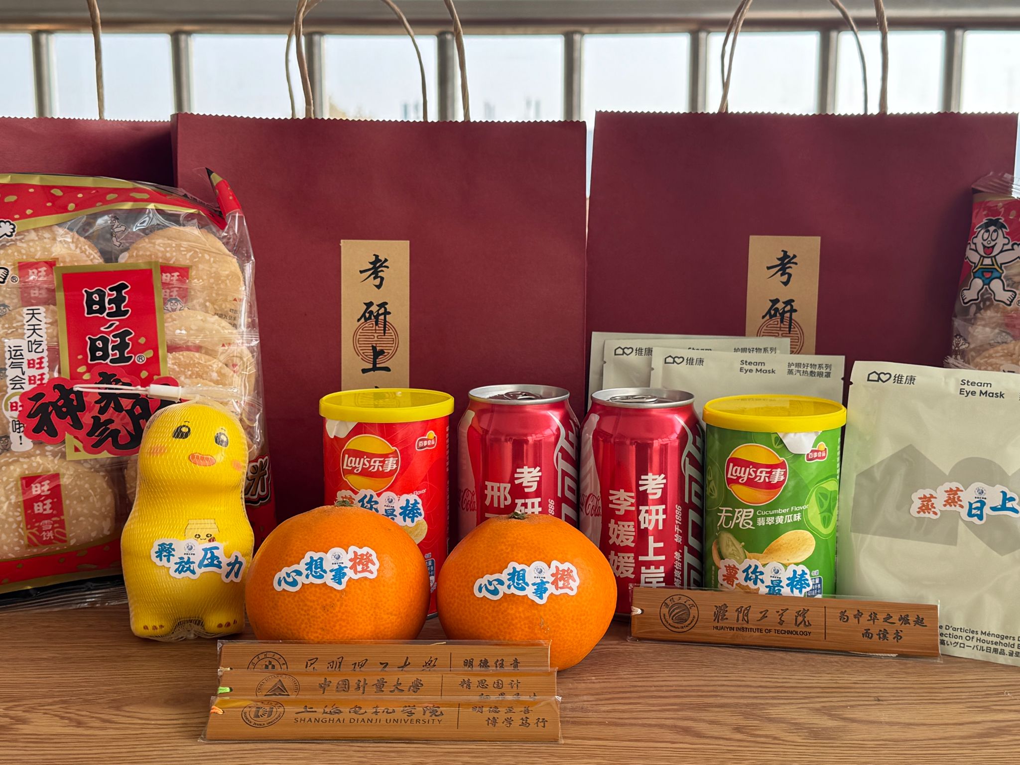 本次慰问活动,公司为每位备战考研的同学准备了来自公司的考研“加油包”,这些加油包外观精美,内容丰富,每一件礼物都蕴含着深深的寓意和祝福。有印着每个人姓名,祝福考研上岸的定制可乐,有“心想事成”的爱媛橙,有“蒸蒸日上”的蒸汽眼罩,有“神来气旺”的雪饼,有“属你最棒”的薯片,有用来“释放压力”的小可爱“奶龙”,甚至还有每位同学报考院校的书签。这些礼品不仅是一次物质上的慰问,更是一次精神上的鼓舞。员工们在收到礼包后,脸上洋溢着惊喜与感动的笑容,纷纷表示感受到了来自公司的温暖与力量。