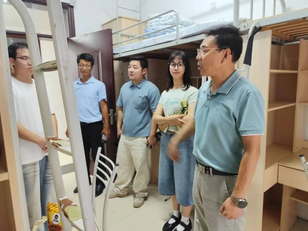 为确保2025级新生入住安全、舒适,提前做好迎新保障工作,9月12日下午,公司党委书记孙全平带领新生班主任、辅导员等一行,深入2025级新生宿舍,开展宿舍设施与环境卫生专项排查工作。
