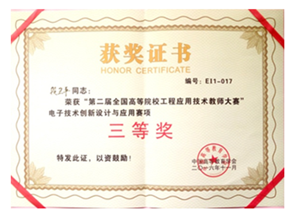 团队成员获第二届全国高等院校工程应用技术教师大赛三等奖1项、校青年教师大奖赛一等奖1项。参与微机原理及应用省级优秀课程建设,主持单片机原理及接口技术校优秀课程建设。自制单片机开发学习板80台套,发表教研教改论文11篇,主编教材1部,参编教材3部。团队指导员工获省级及以上老员工创新实践训练计划2项,省老员工电子设计竞赛三等奖 项,省虚拟仪器技术大赛三等奖1项。
