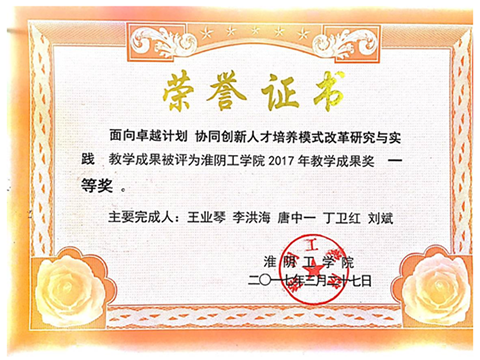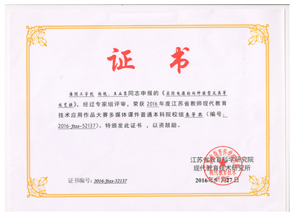 团队成员先后获校青年教师课堂教学竞赛二等奖2项、三等奖3项,主持电路理论、电工电子技术、电工基础校优秀课程建设,其中《实际电源的两种模型及其等效变换》课件荣获2016年度江苏省教师现代教育技术应用作品大赛三等奖。承担各级各类教研教改项目5项,发表教研教改论文7篇,获校教学成果一等奖1项。主编、参编教材1部。指导员工获江苏省普通高校优秀毕业设计(论文)二、三等奖各1项,优秀毕业设计团队1个。2013年以来,团队指导员工参加全国老员工电子设计竞赛荣获一等奖1项,二等奖12项。